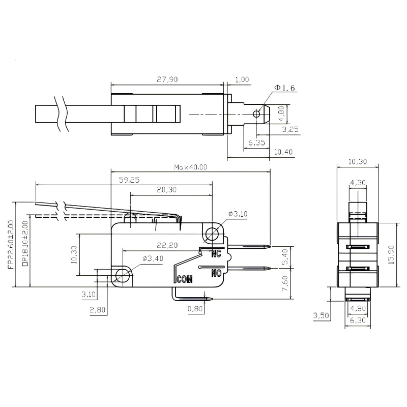Задействане с точност до милисекунди: Използва бърз механизъм с моментално действие с къс ход от 0,5-1,6 мм и регулируема работна сила от 0,25-4N, осигурявайки бърз отговор без забавяне за ефективно предотвратяване на "фалшиви задействания". Подходящ за високопрецизни сценарии, като управление на вратата на микровълнова фурна и промишлени сензори.