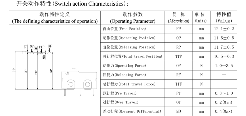 Микро превключвател Спецификация