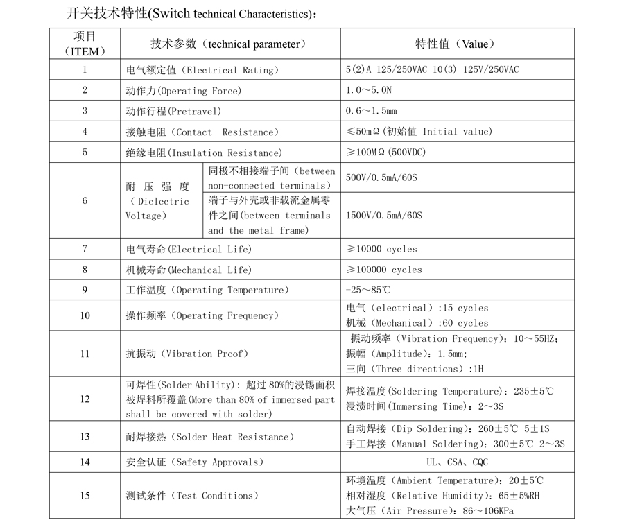 | 15 | Условия на теста | Температура на околната среда: 20±5℃ Относителна влажност: 65±5%RH Въздушно налягане: 86 ~ 106 KPa |