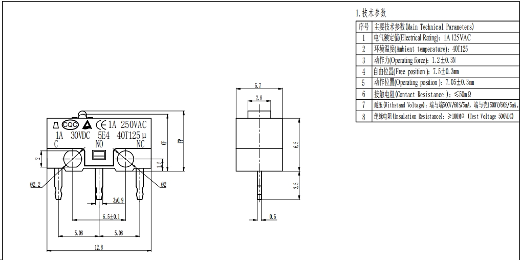 Параметър на микропревключвателя (спецификация)