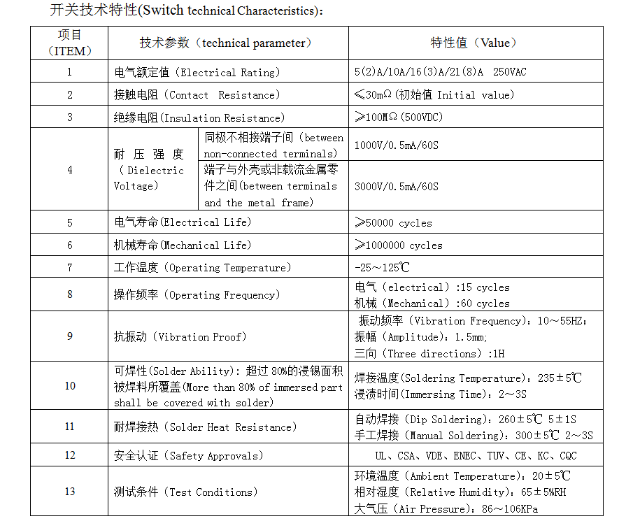 | 2 | Контактно съпротивление | ≤30mΩ Първоначална стойност | |
